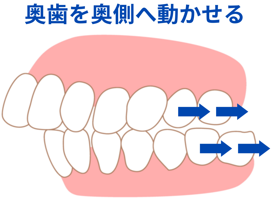 それにより空いたスペースに次の奥歯を動かし、さらに次の奥歯を動かします。