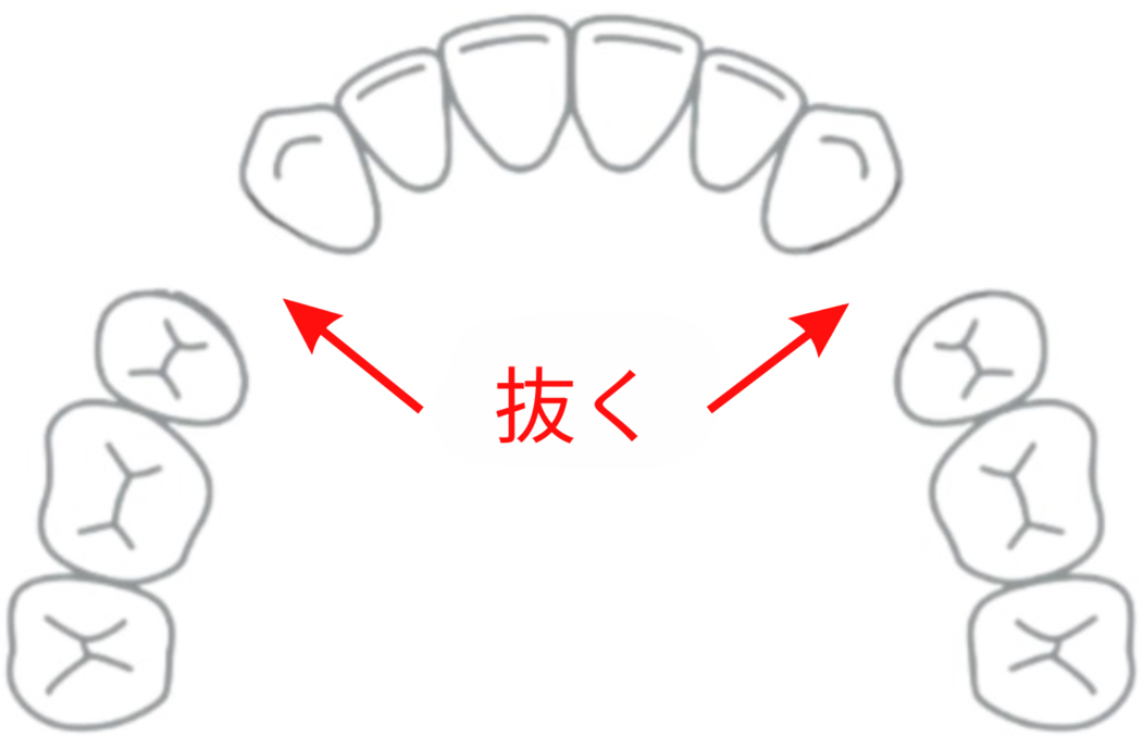 具体的には前から4番目の歯を抜いて、前歯を並べるスペースを生み出します。